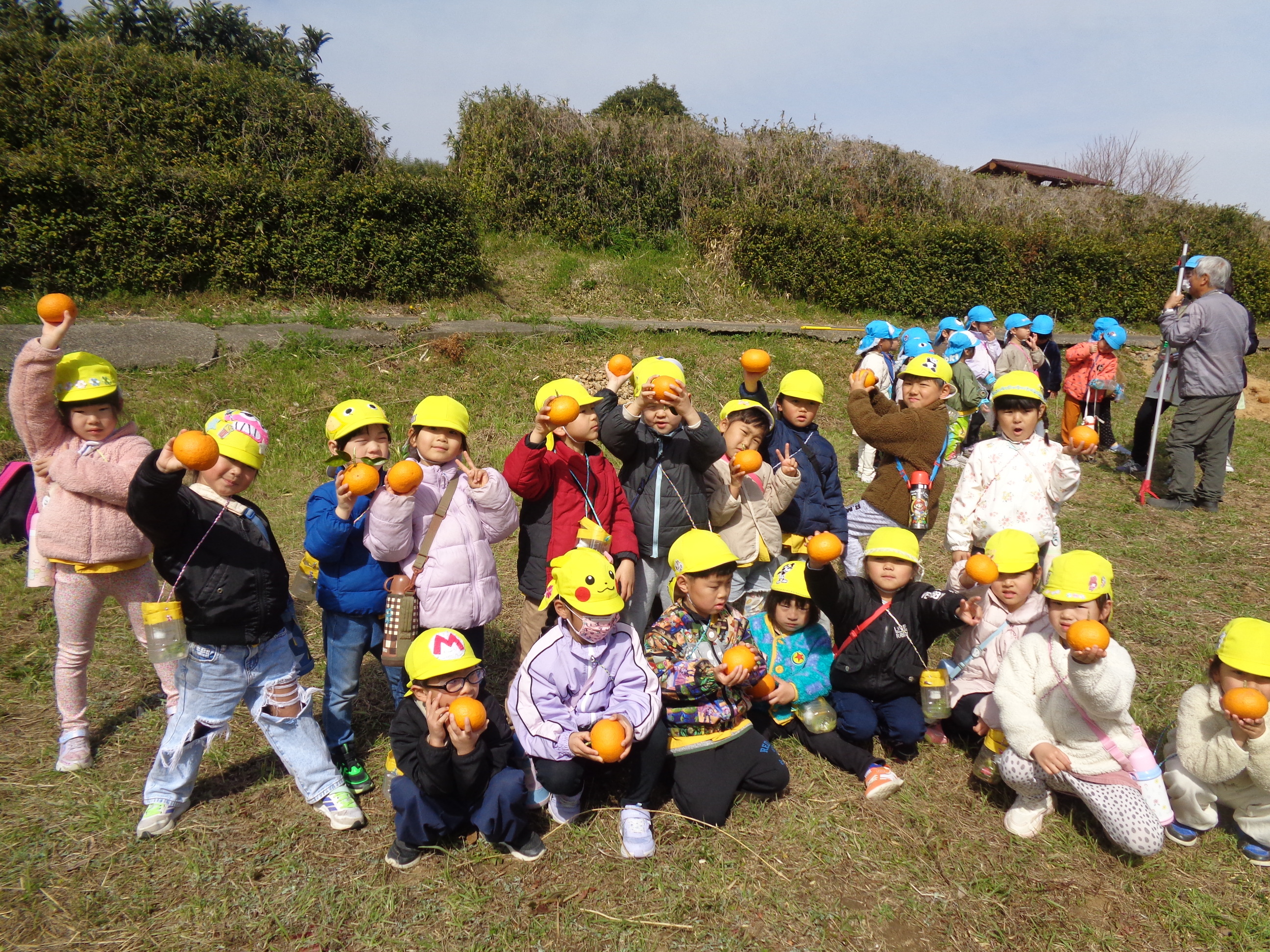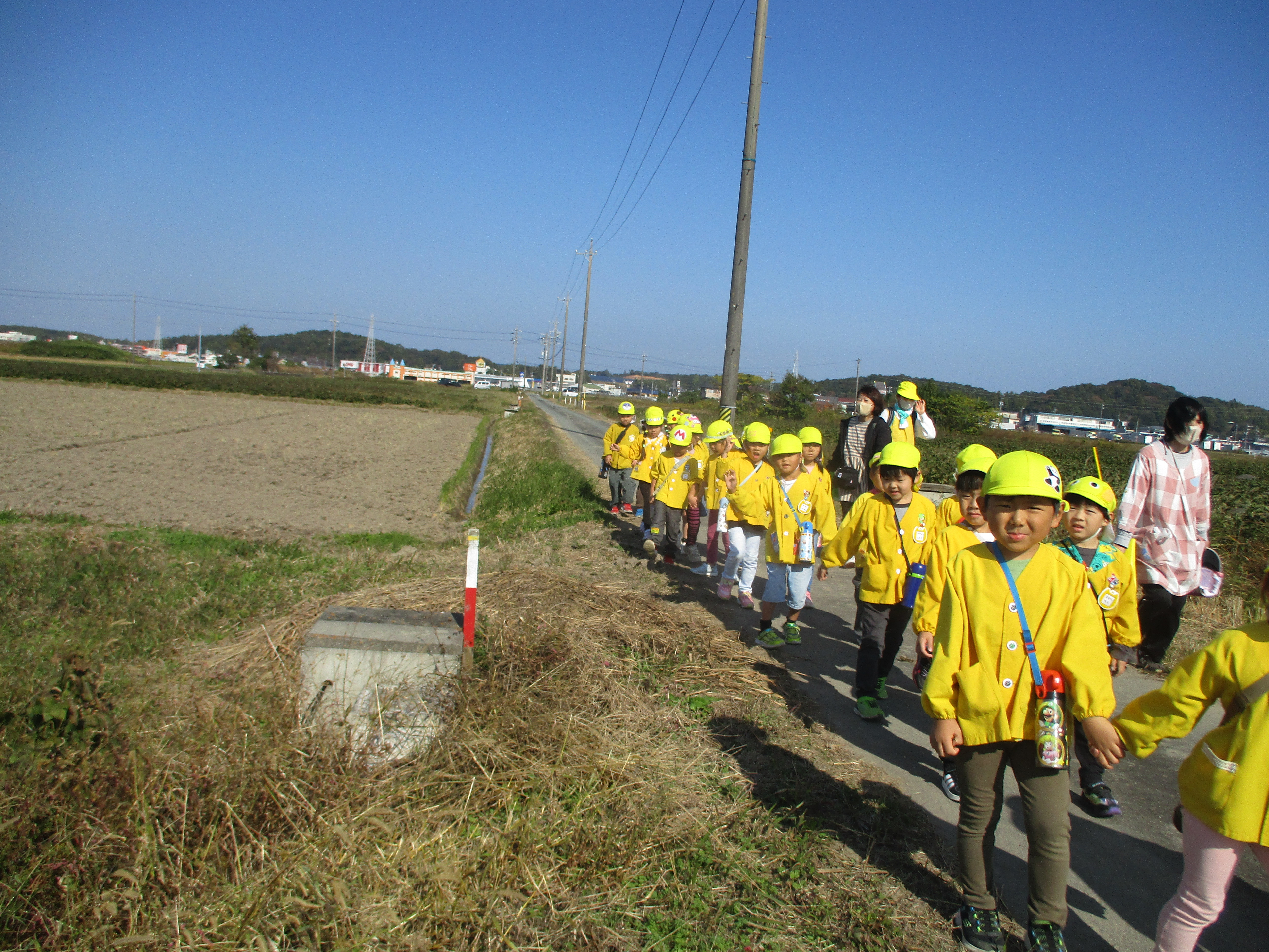 少し遠い道のりでしたが、柿や柚などの自然物や秋空を見たりと散歩を楽しんでいました♪