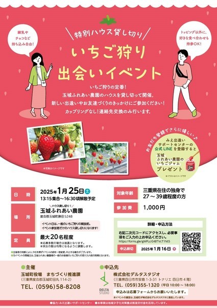 玉城ふれあい農園のハウスを貸し切って『特別 ハウス貸し切りいちご狩り×出逢いイベント』を開催します。