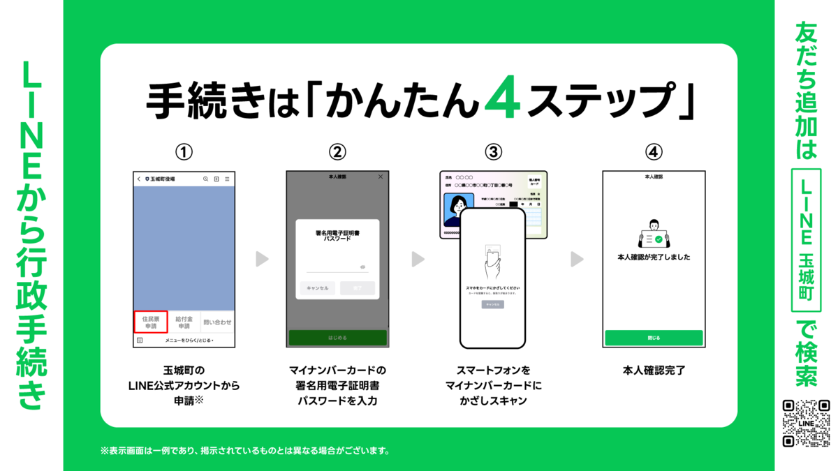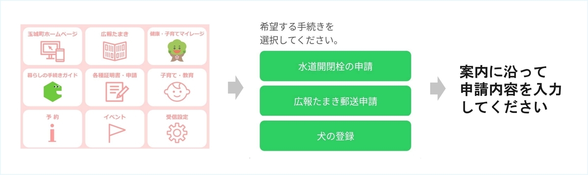 玉城町への申請、届出等の行政手続きを、LINEのトーク上のやり取りにより簡単にオンライン申請することができます。