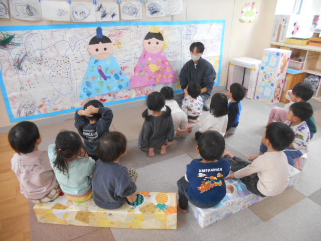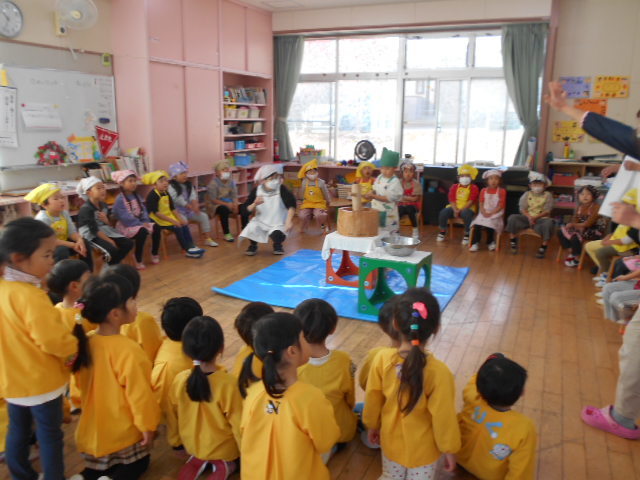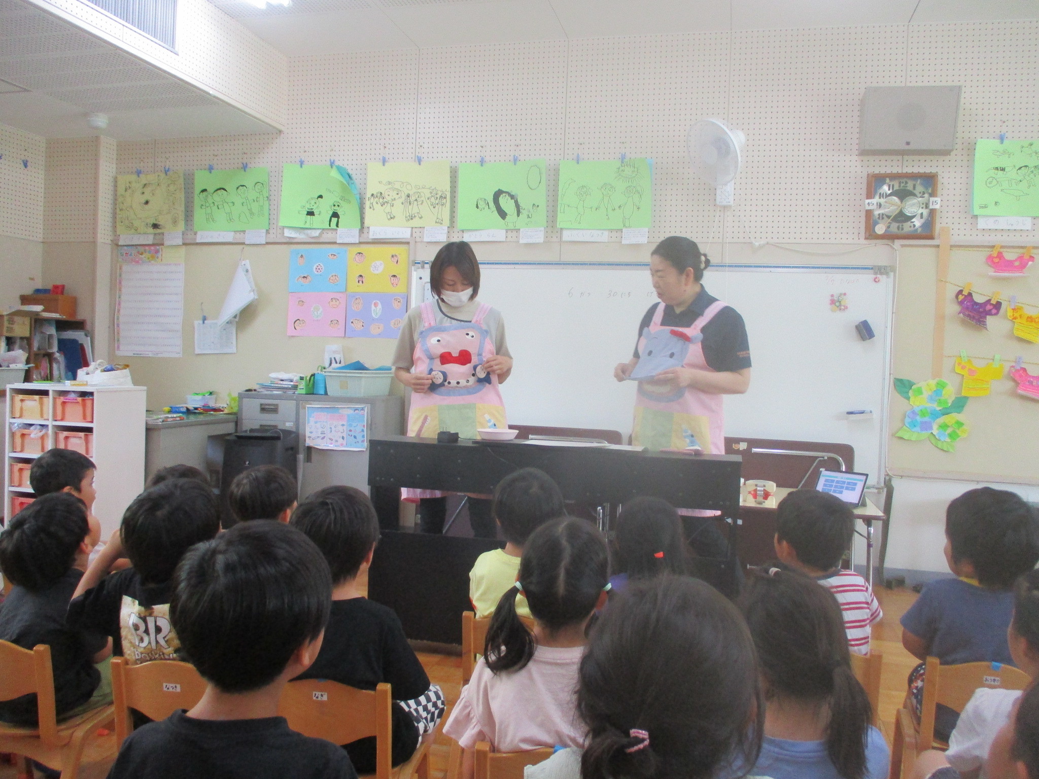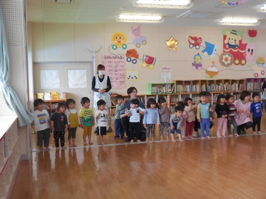 保健師さんにエプロンシアターを見せてもらい、歯の大切さ・歯磨きの大切さについて教えてもらいました(^-^)