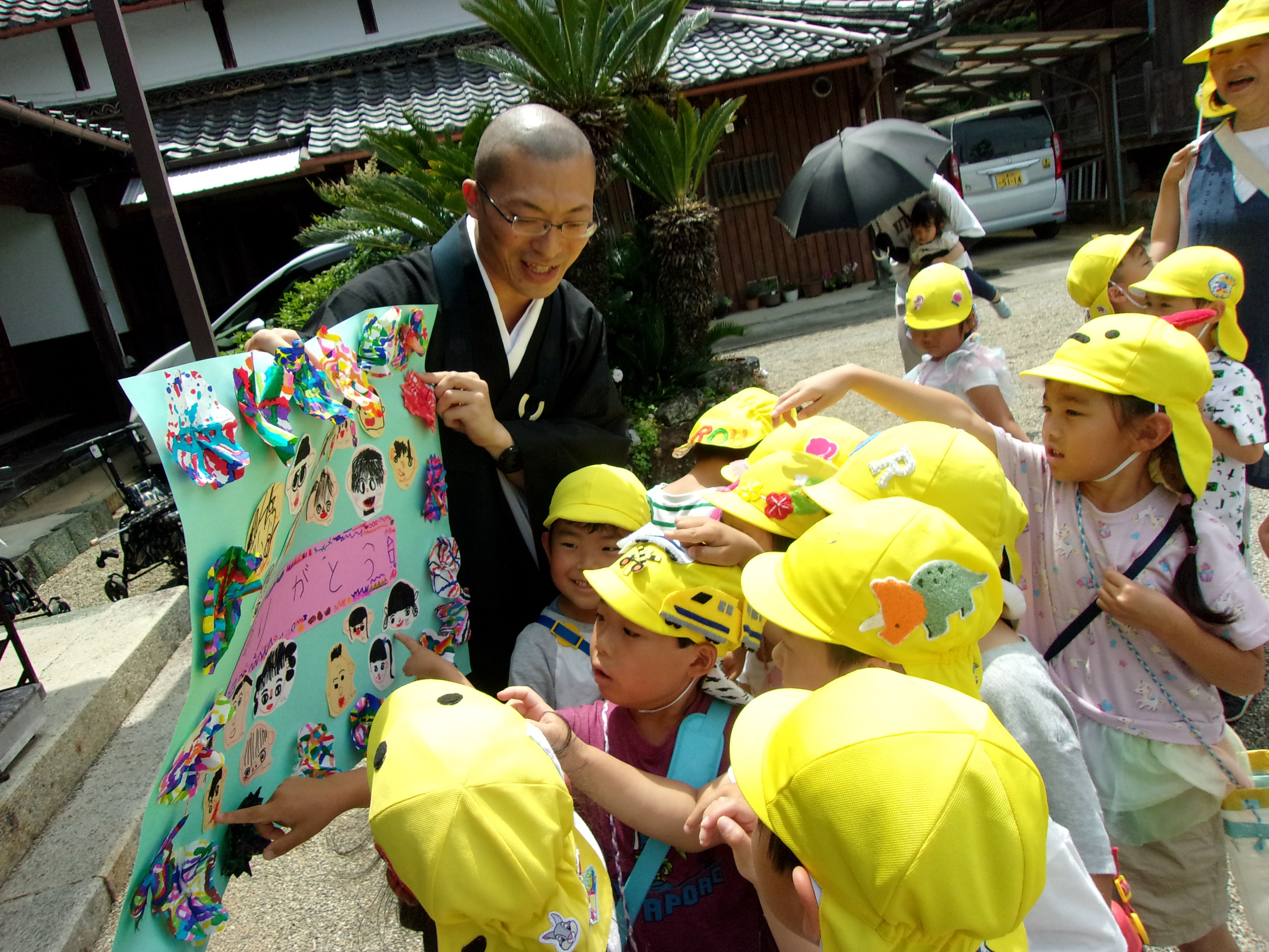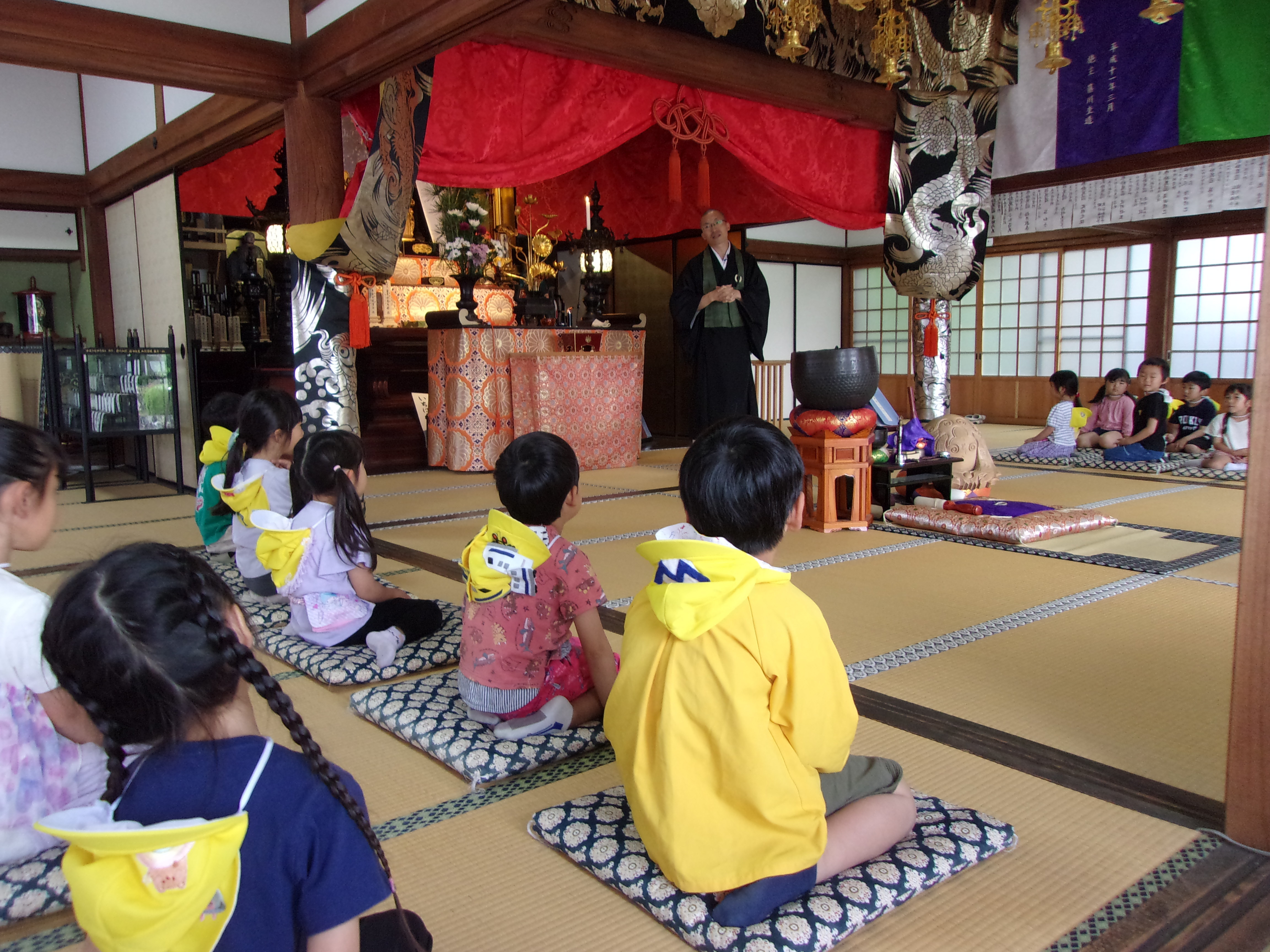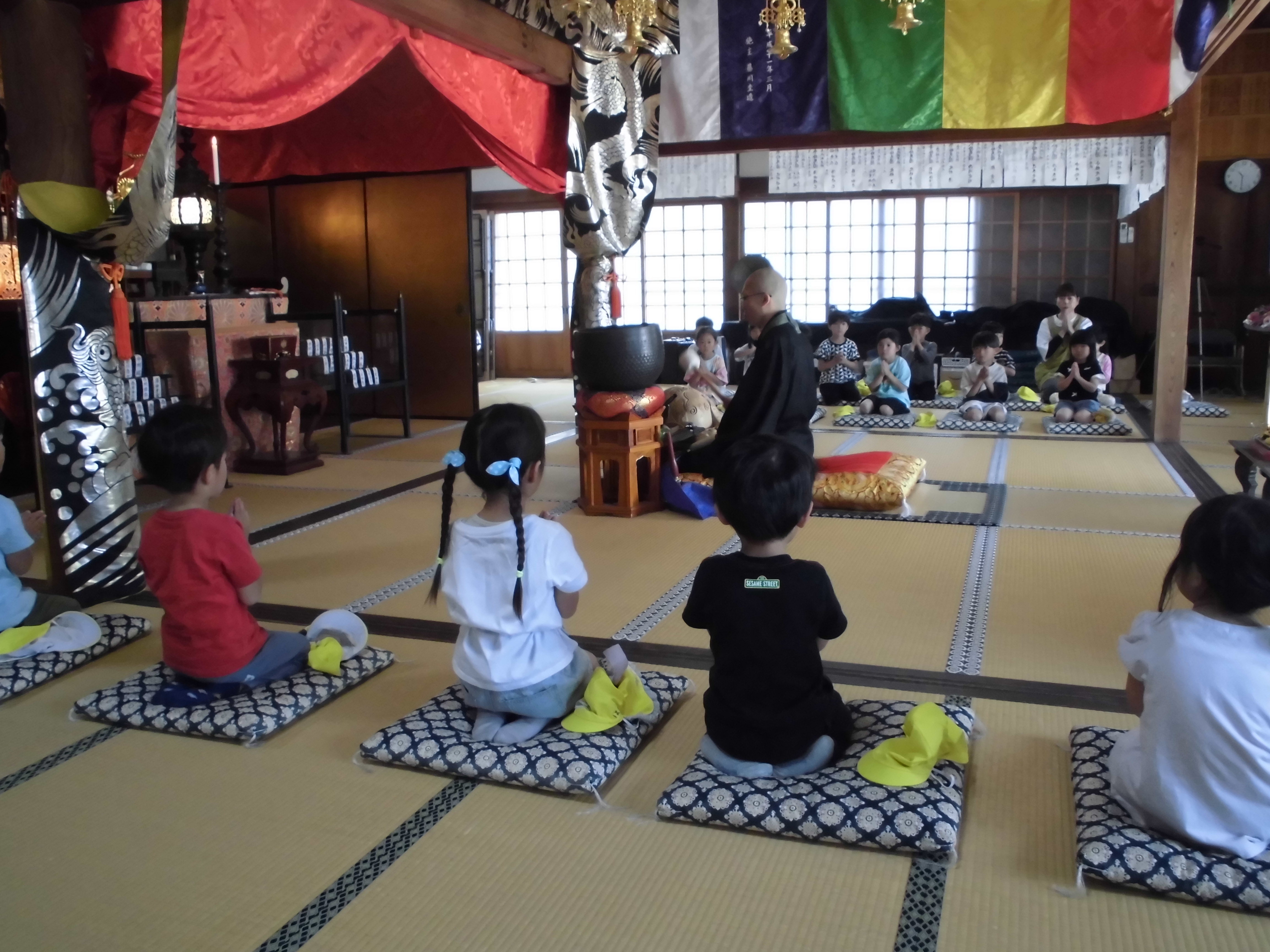 『「うれしい」も「たのしい」ももらうだけでなくあげるもの。みんなのえがおがいちばんしあわせ』というご住職さんのお話を真剣に聞いていた子どもたちでした。