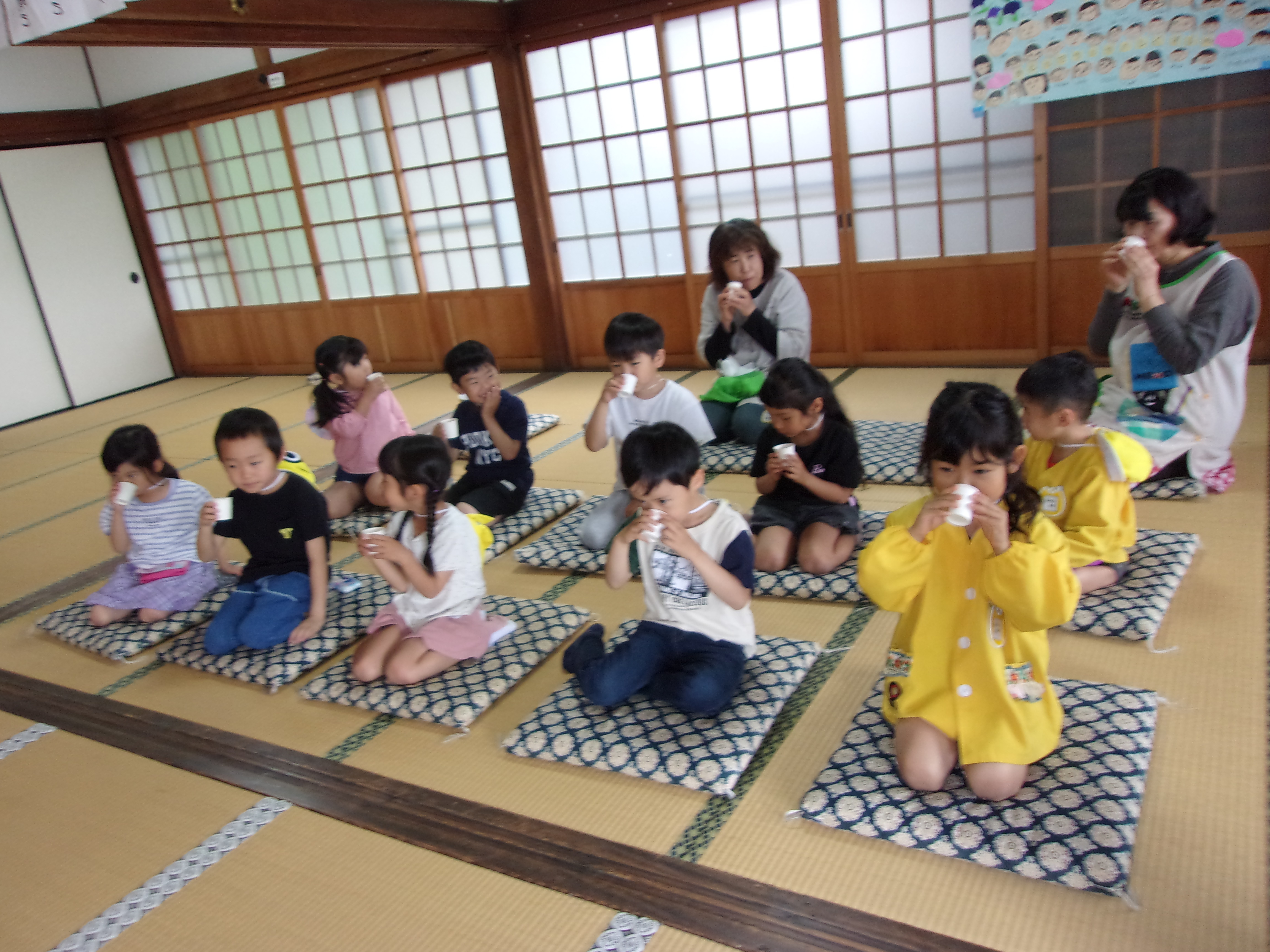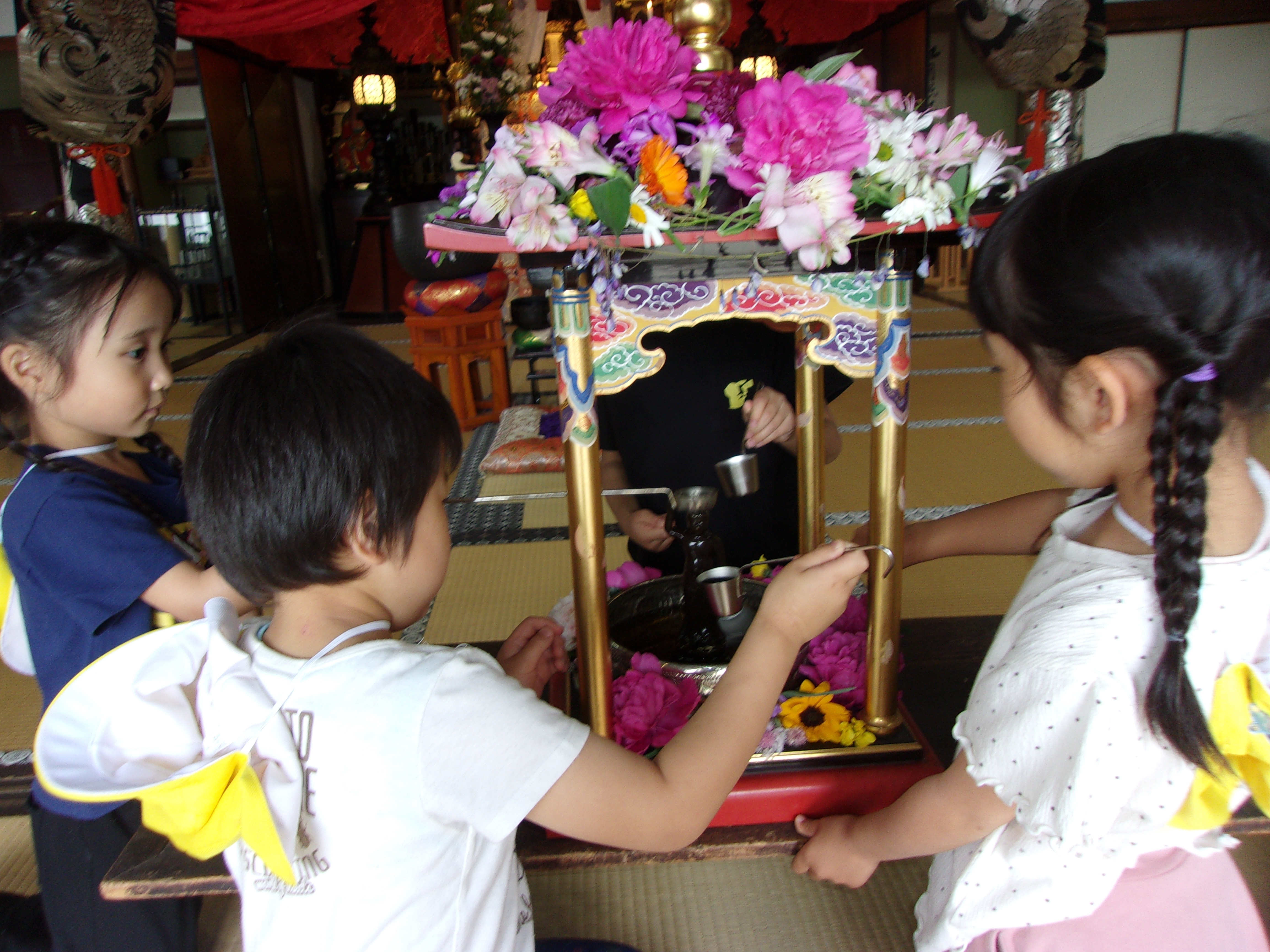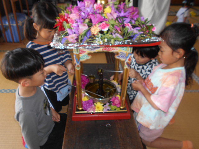 1人ずつお釈迦様に甘茶をかけ、最後にみんなで甘茶をいただきました。じっくり味わっていましたよ(*^-^*)
