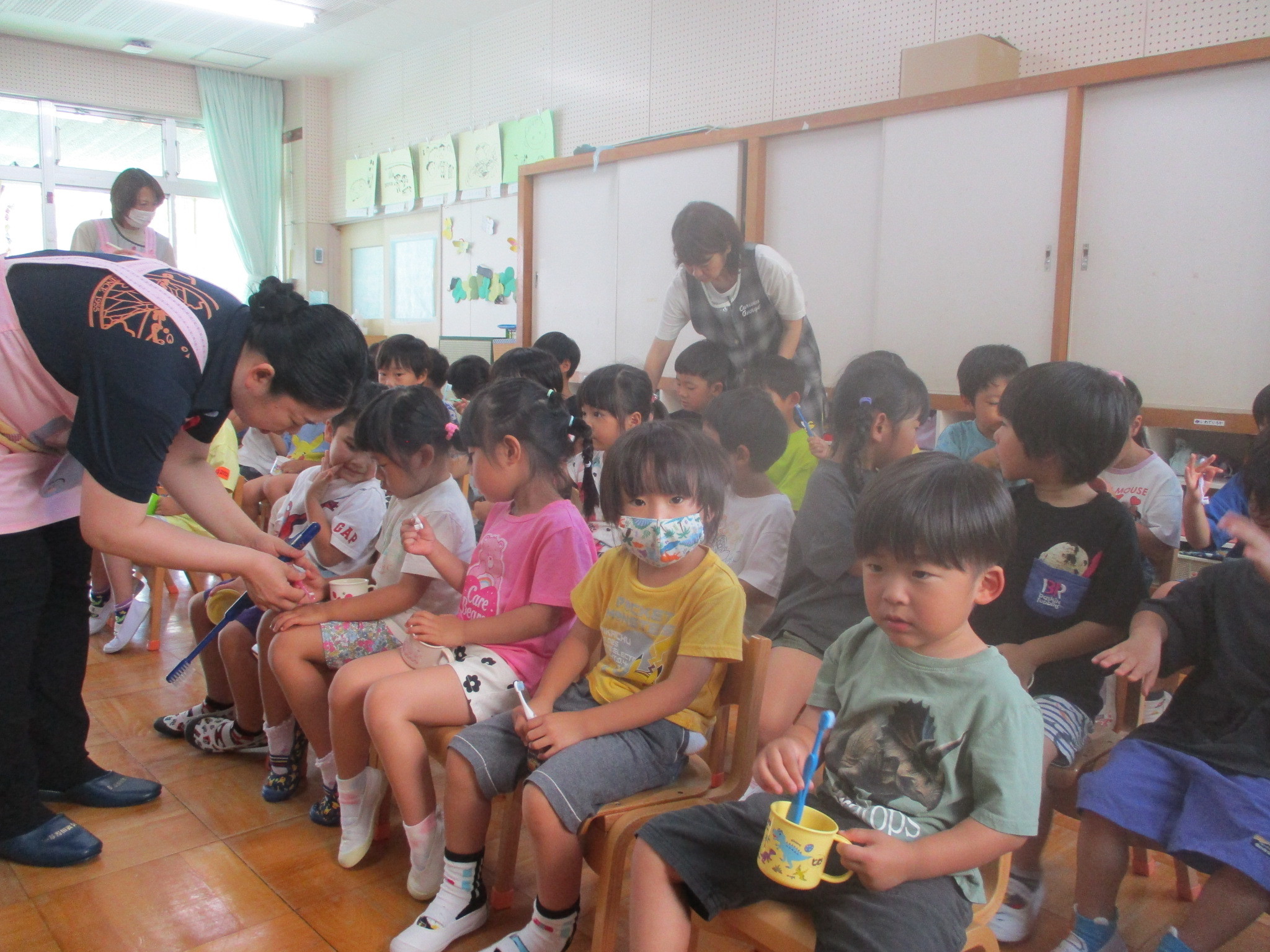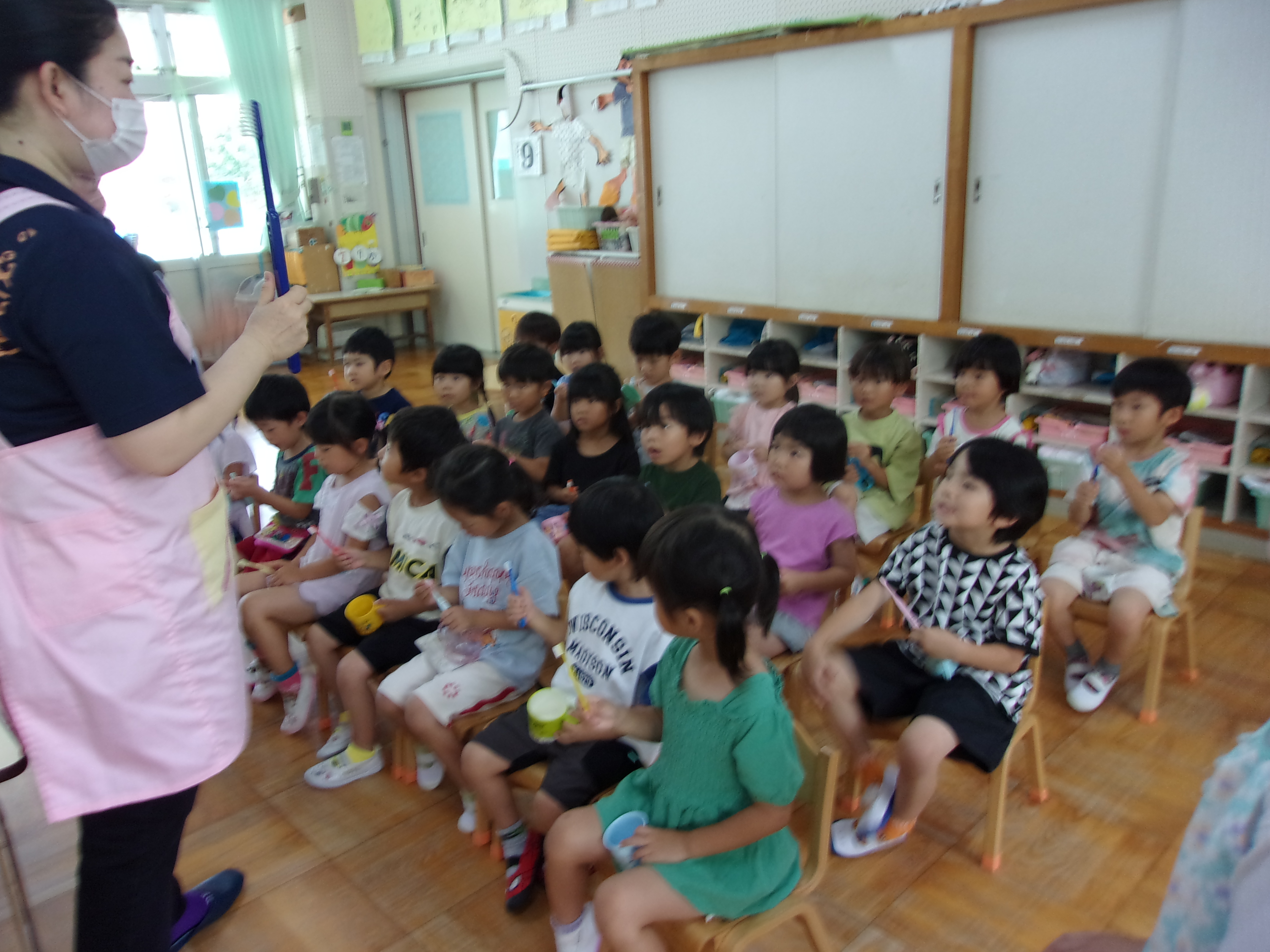 子どもたちもしっかり聞き、「食べたら歯みがきしないとダメ」「歯みがきしないと虫歯になっちゃう」と話す姿も見られましたよ♪