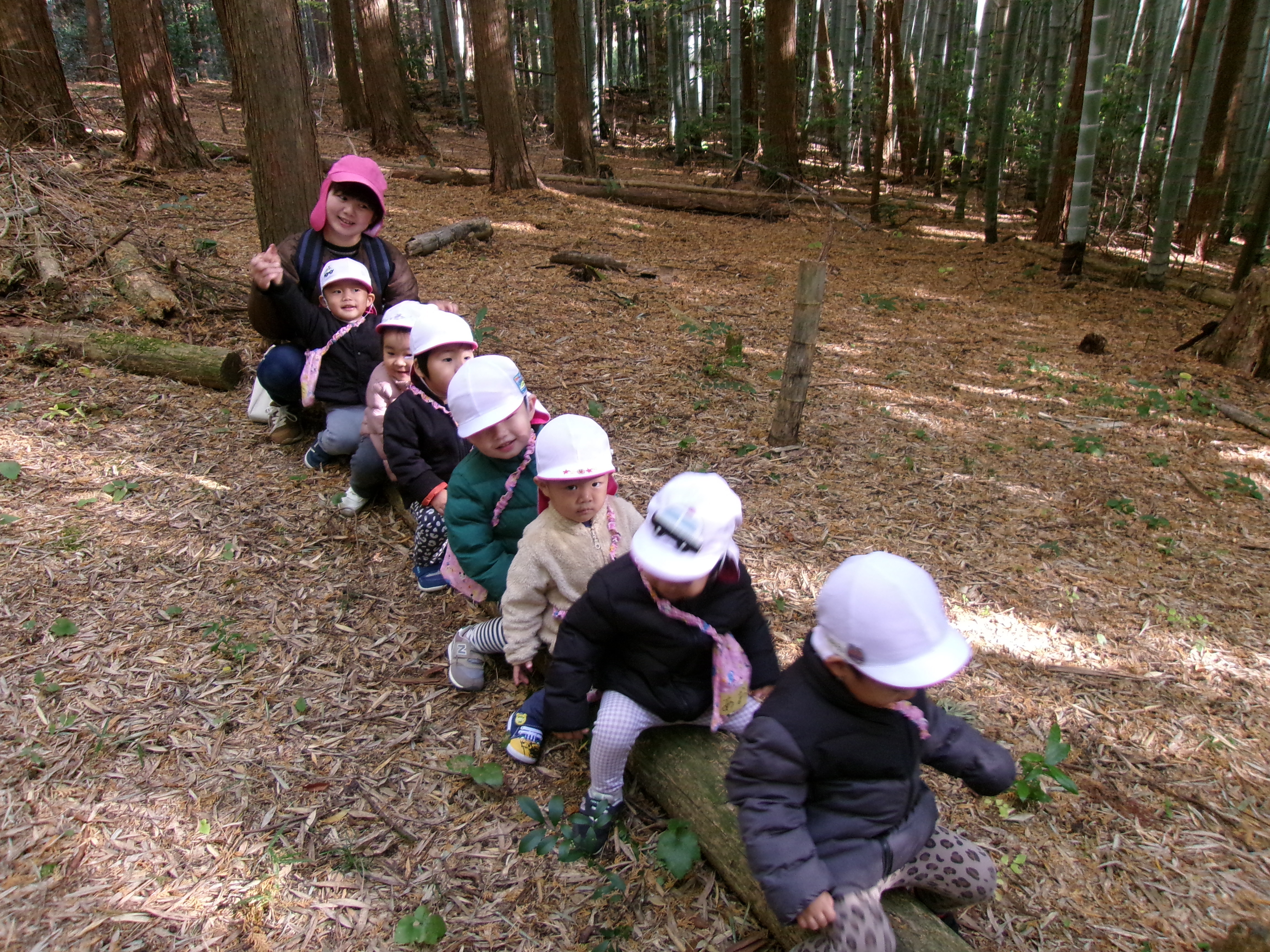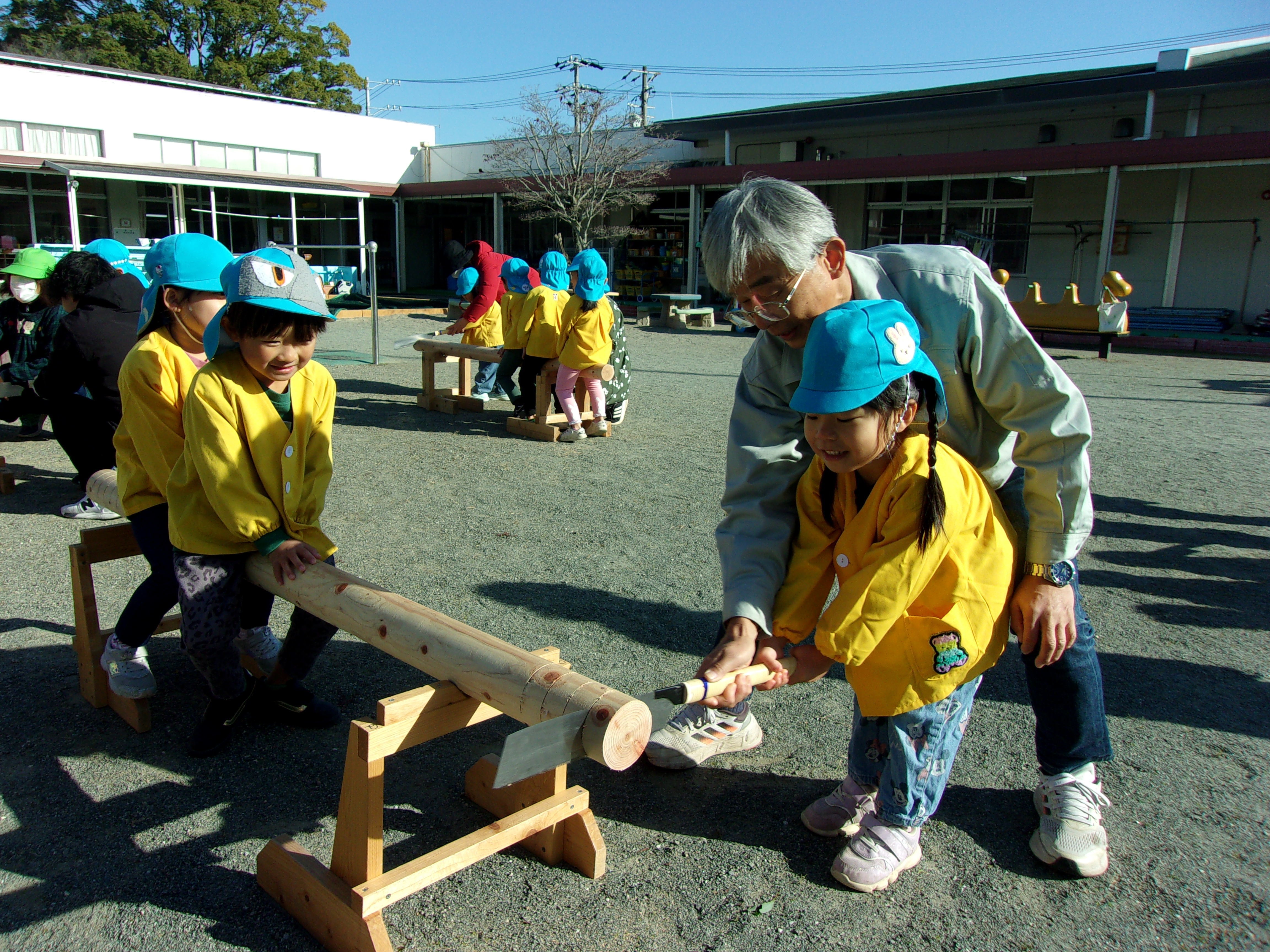 切り落とした丸太はとってもいいにおいがしました。自分で切った丸太に喜ぶ子どもたちでした♪