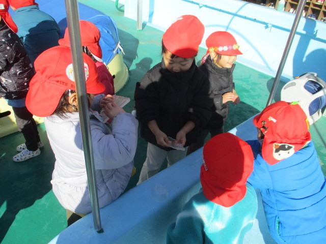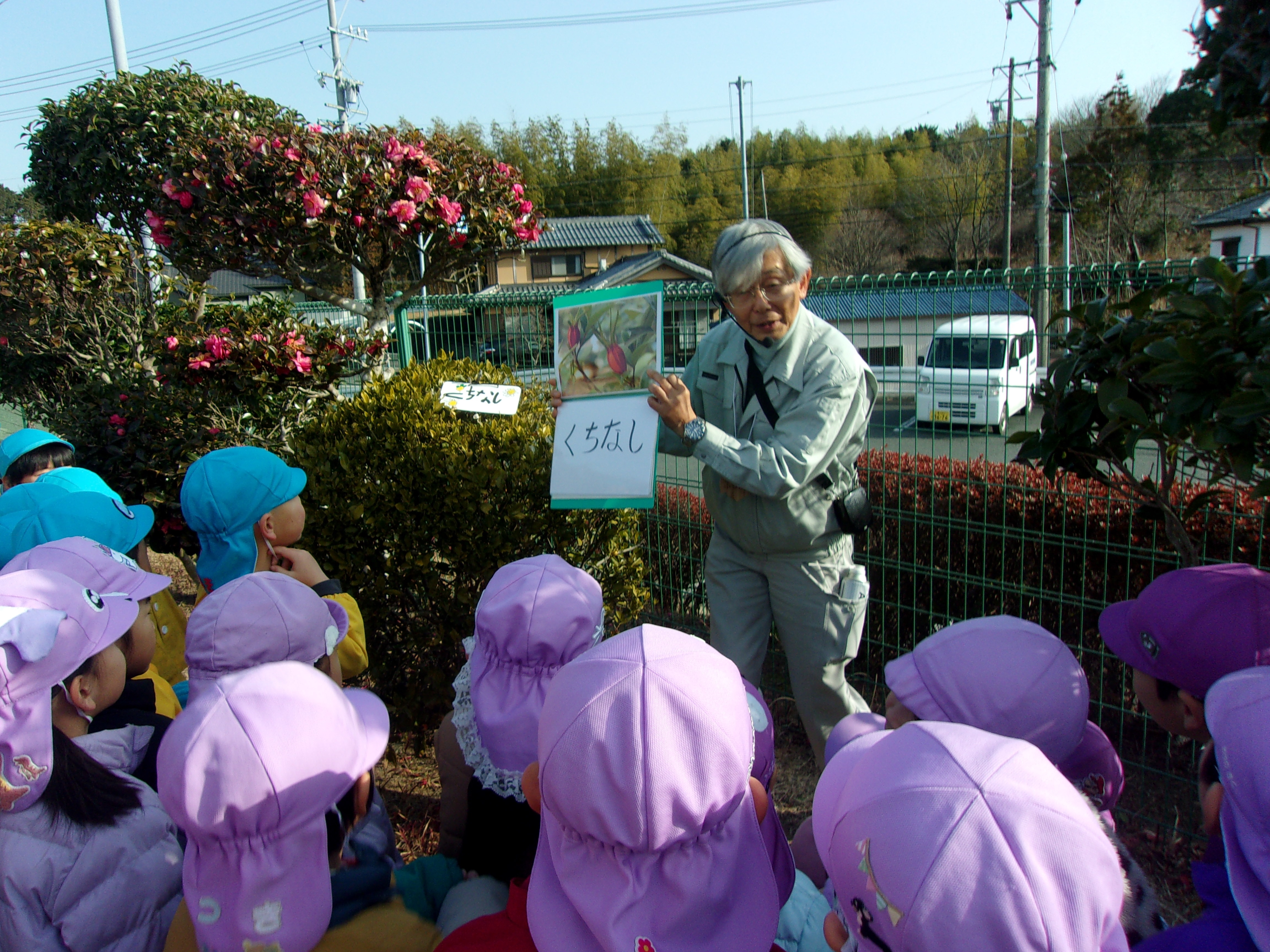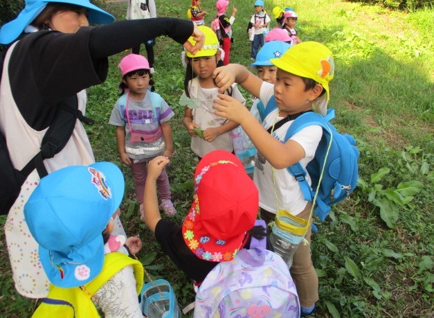 園庭にある木の『花』や『実』について教えてもらったり、『柊の葉の風車』の遊びも教えてもらいました。