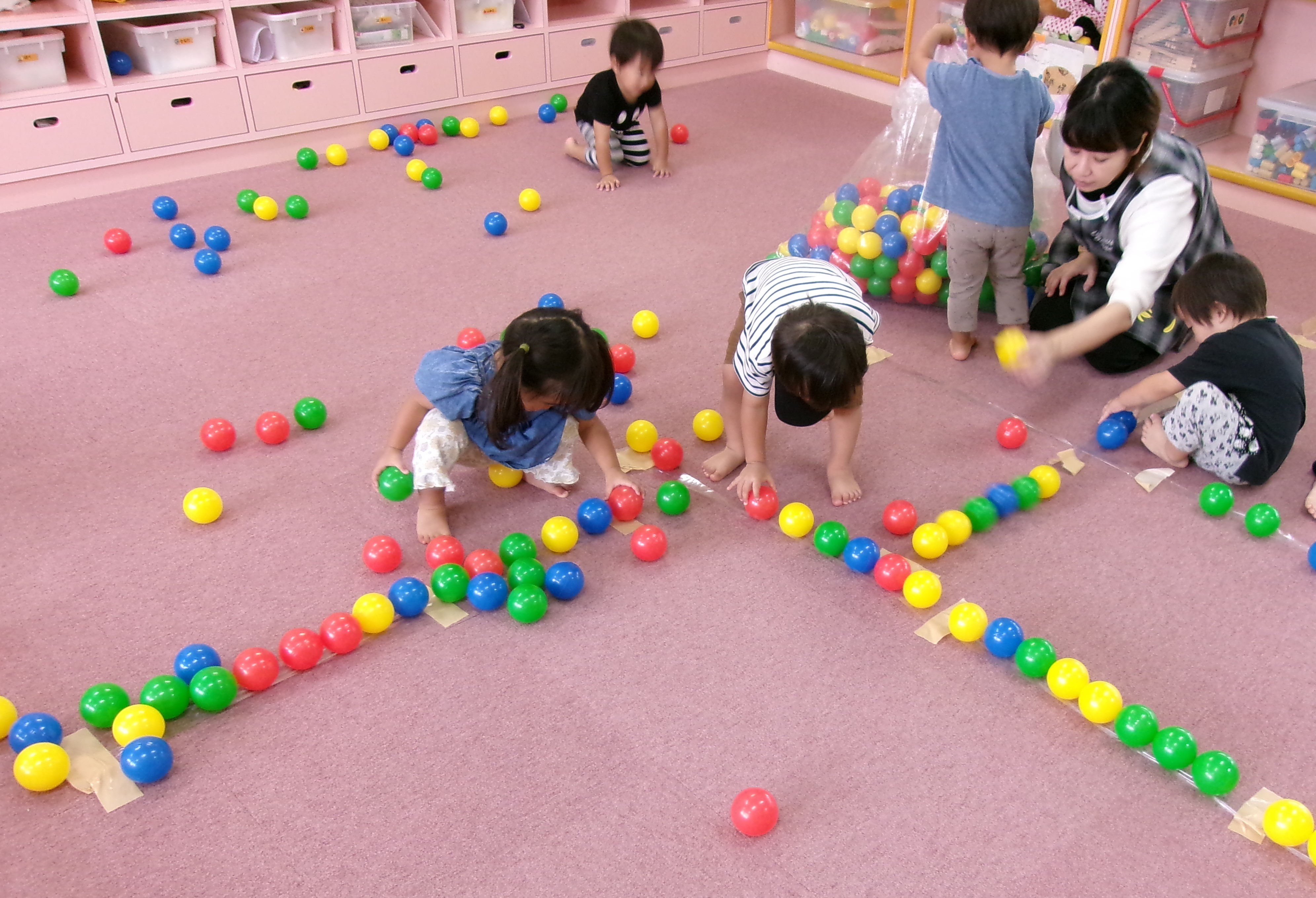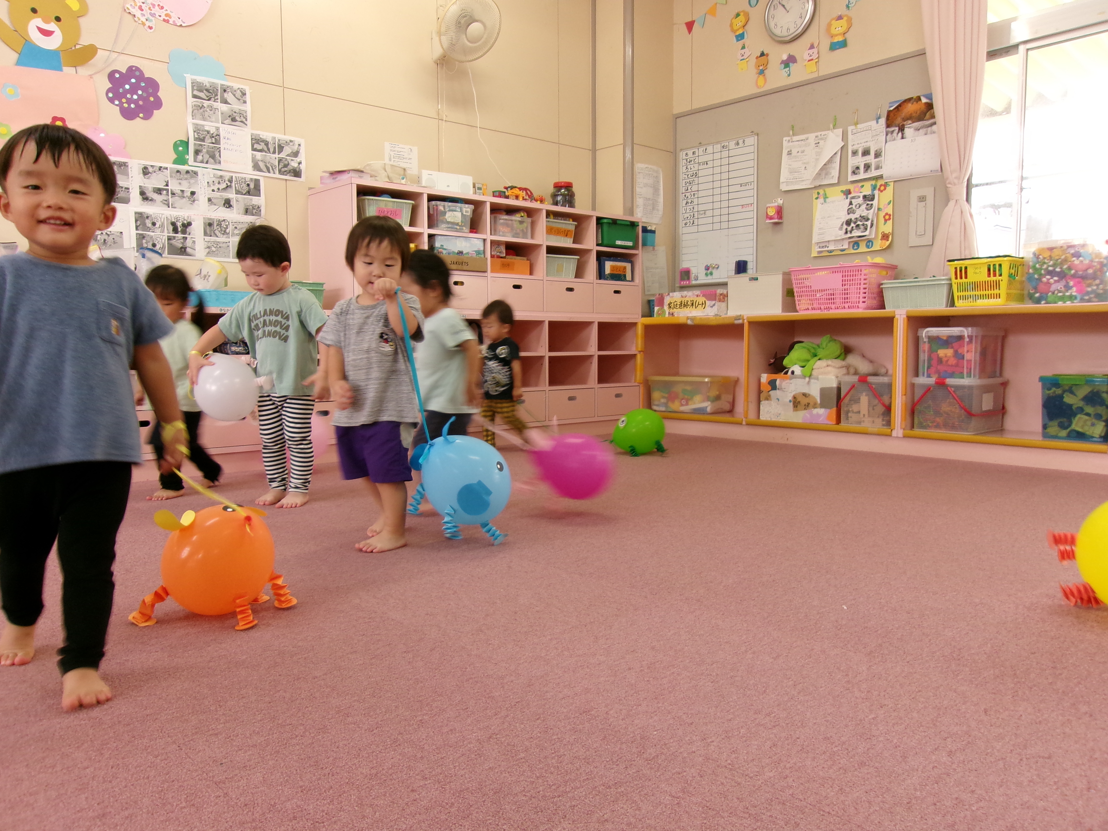 保育所の生活にも慣れ、室内でのあそびや散歩を楽しんでいます。