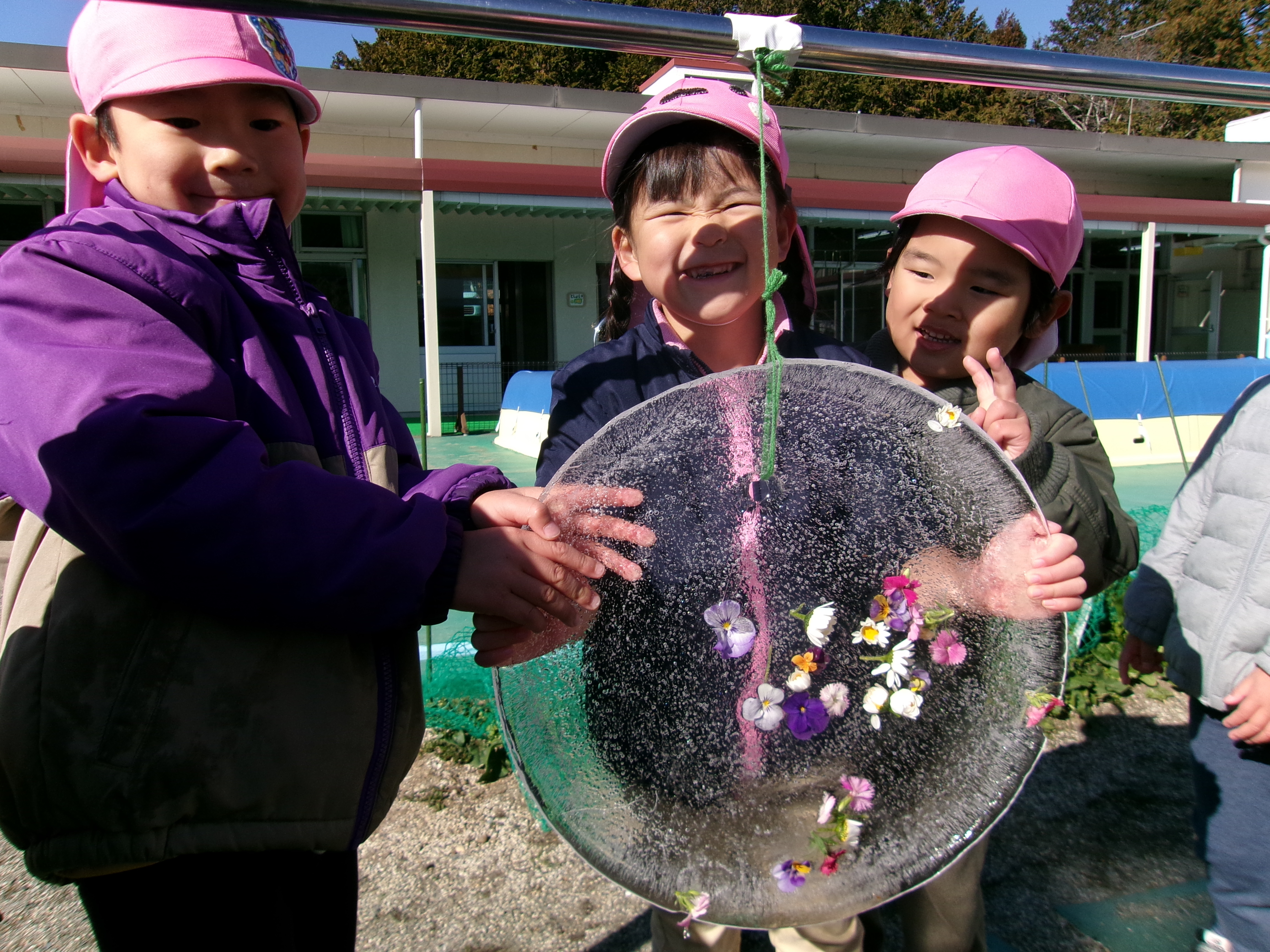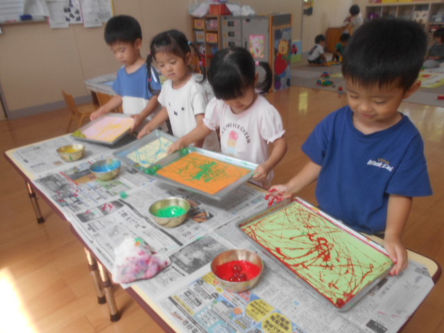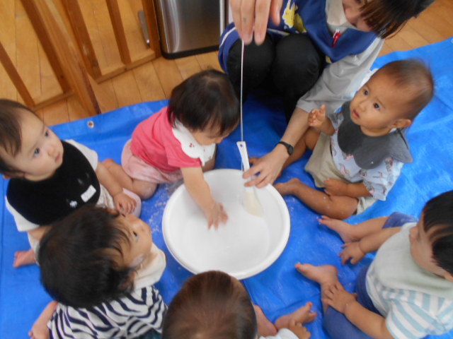 大きなしゃぼん玉を作るのに挑戦したり、「できた!」「見てみて~!」の声がたくさん飛びかいました(*^-^*)