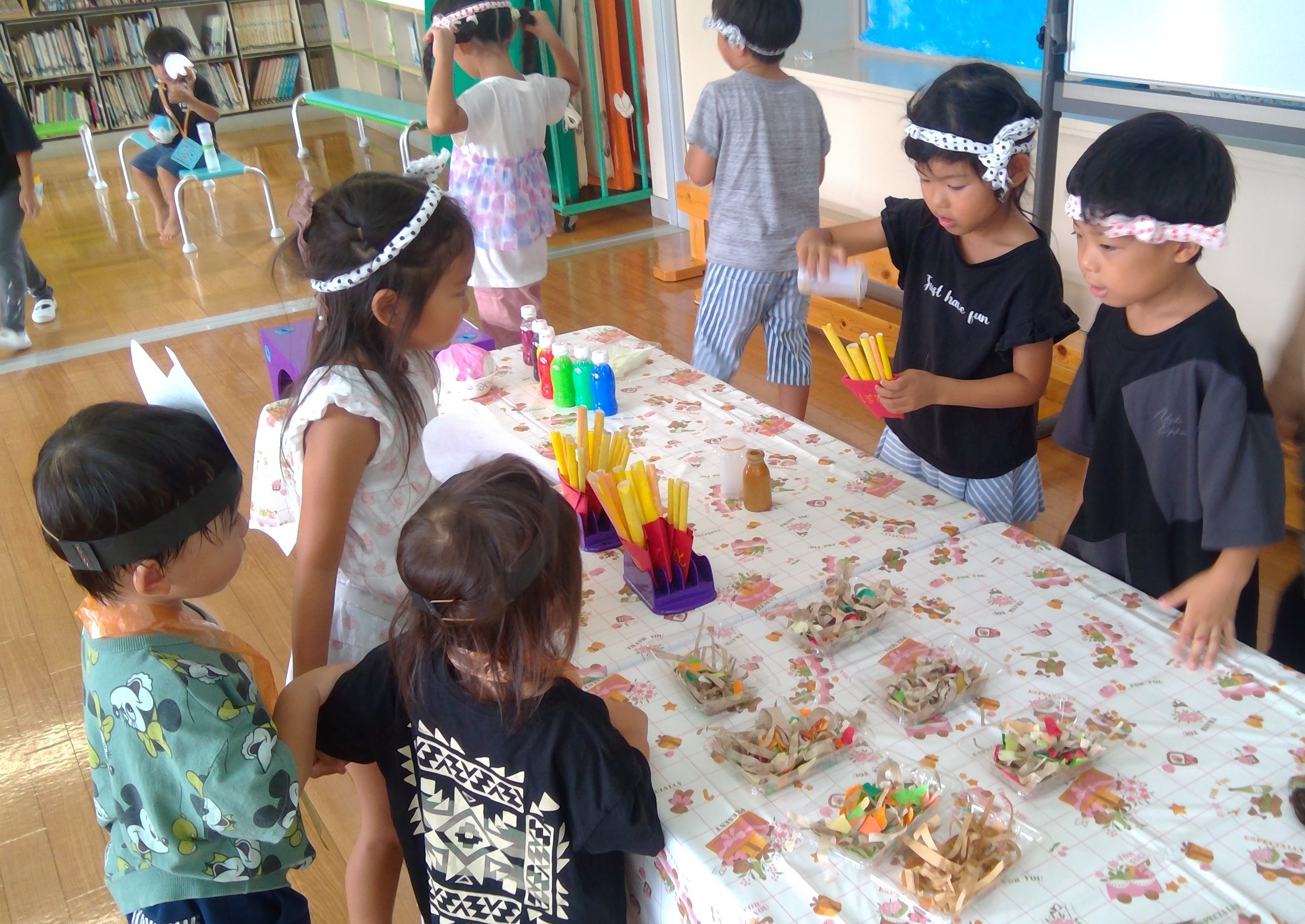 たくさんの食べ物やヨーヨーは年長さんの手作りです♡