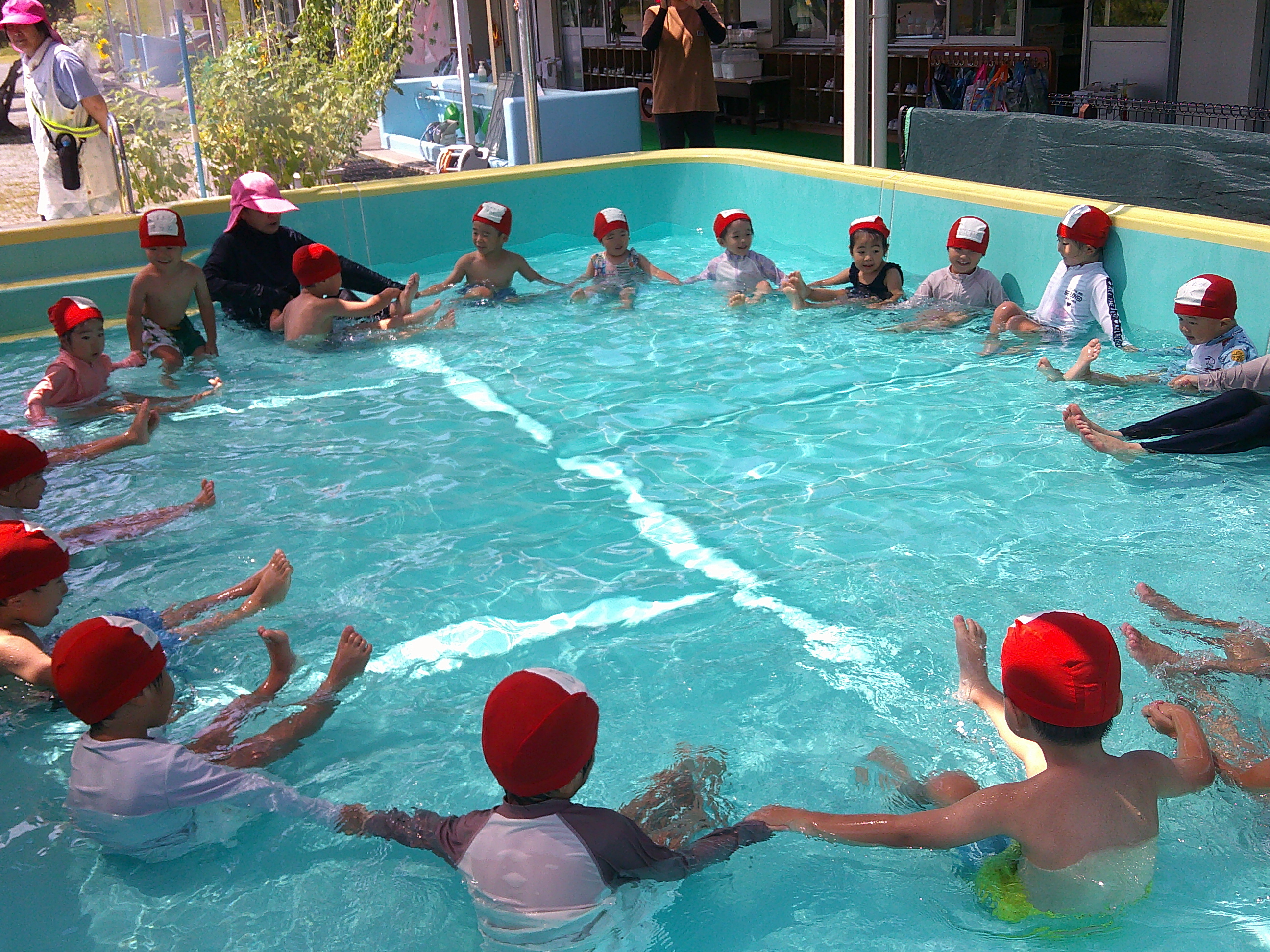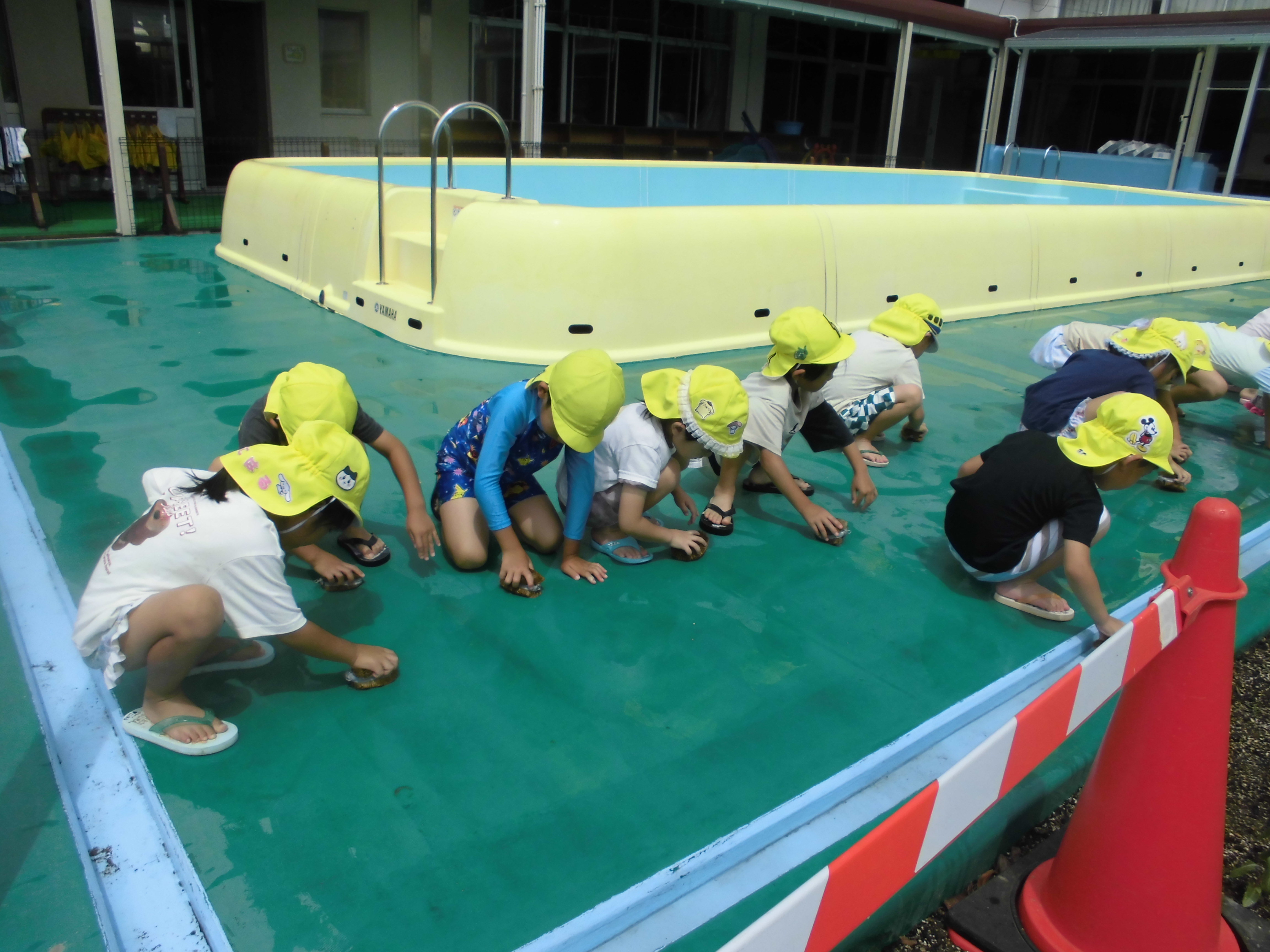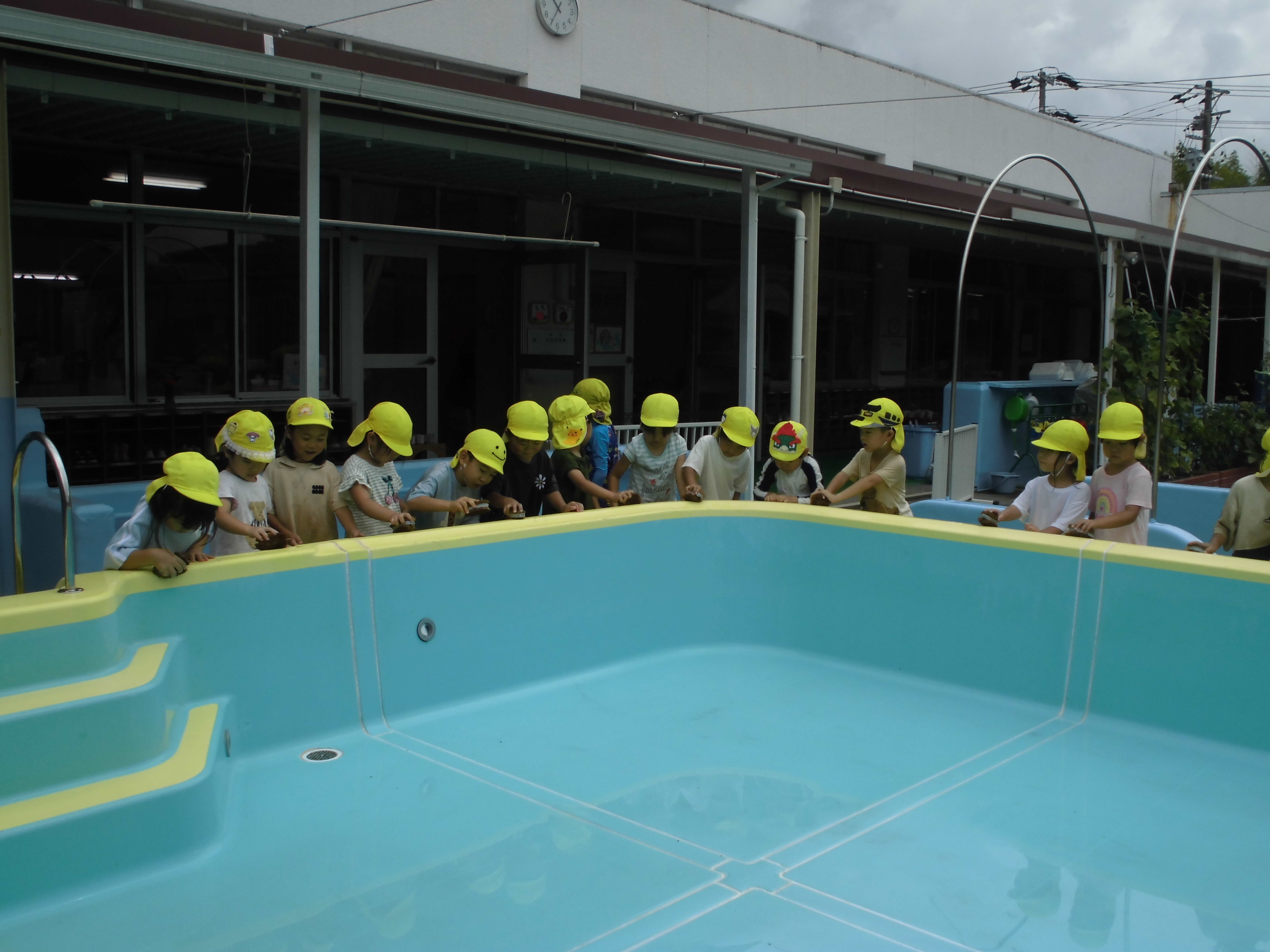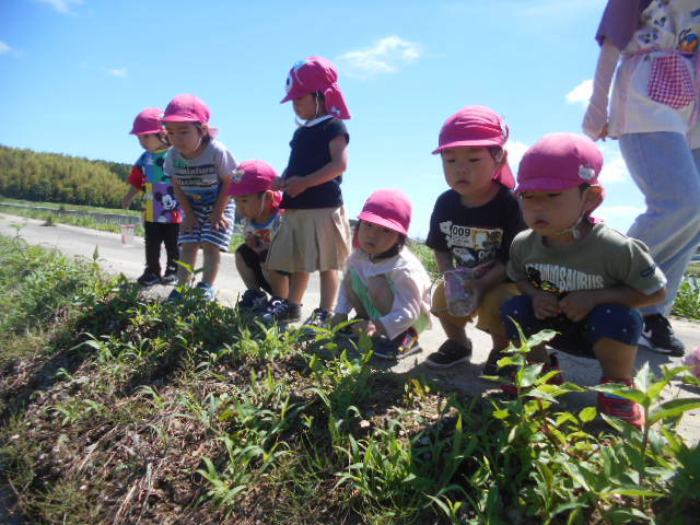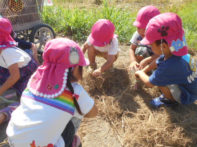 「あ、おたまじゃくしおる!」「にげてくよ~!せんせい、つかまえて~」と大喜びの子どもたち♪おたまじゃくしをすくってバケツに入れると「ちっさいなぁ」「かわいい~」と言いながら眺めていました(^^)