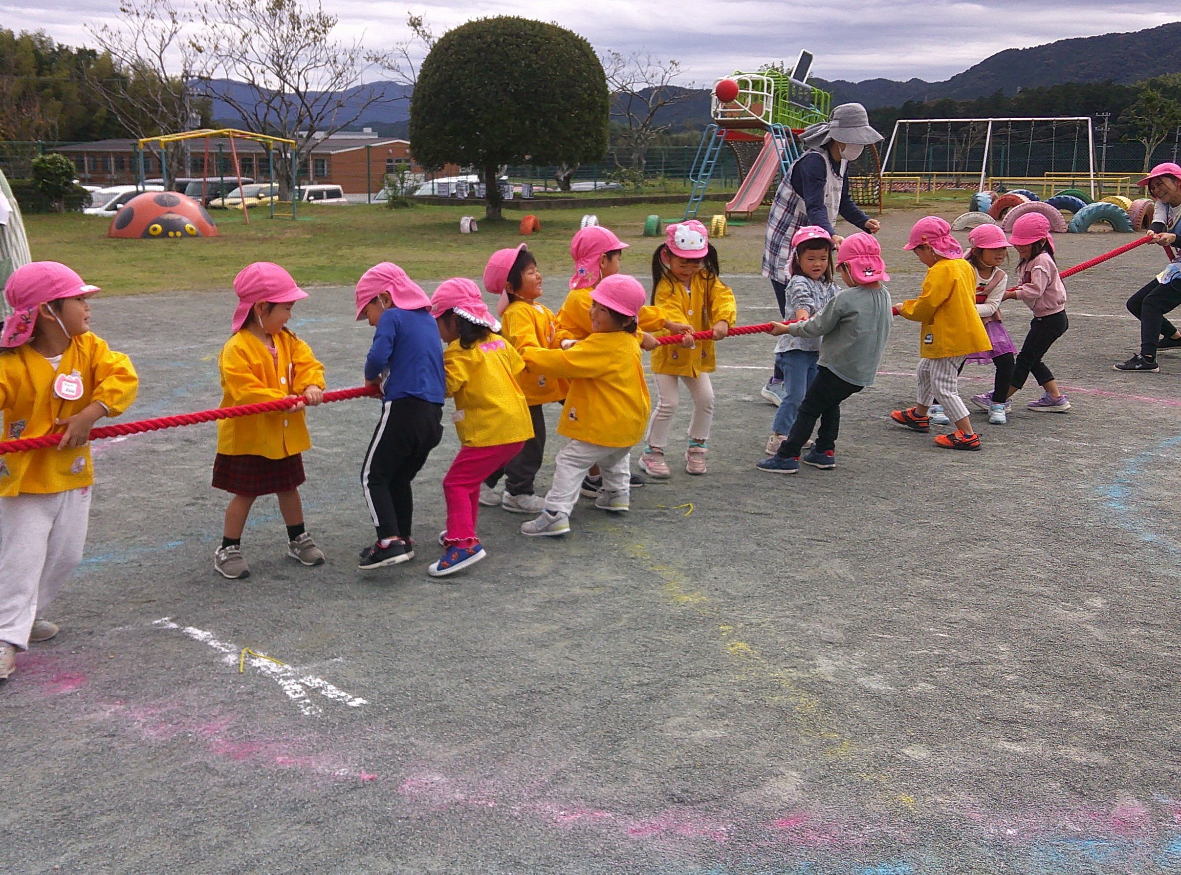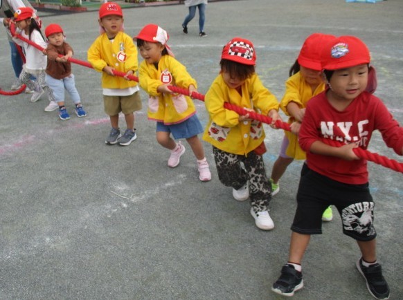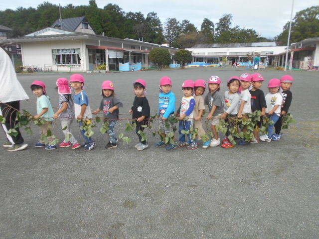 いもほりのあとは綱引きごっこで遊んだよ。楽しかったね♪