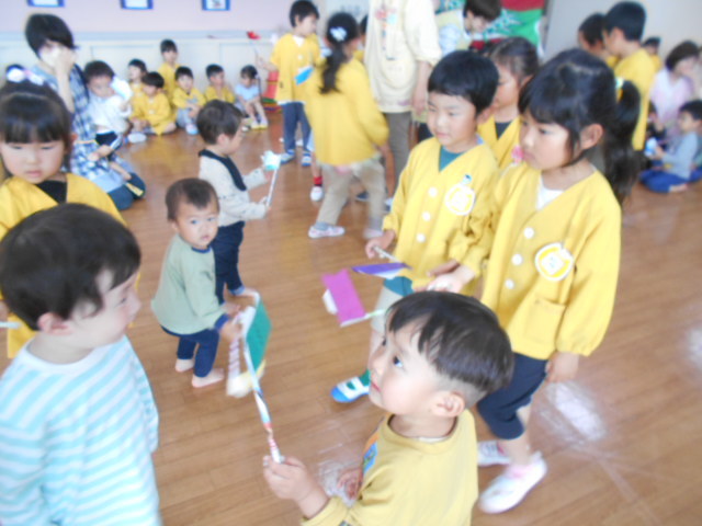 未満児組さんは、こいのぼりをもらったよ。
