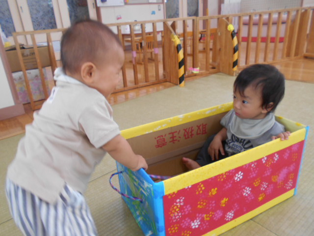 ダンボール電車であそんだよ【0歳児】