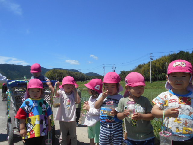 ホウネンエビやドジョウ、大きなオタマジャクシなど色々な生き物が捕まえられて大喜びの子どもたちでした♪