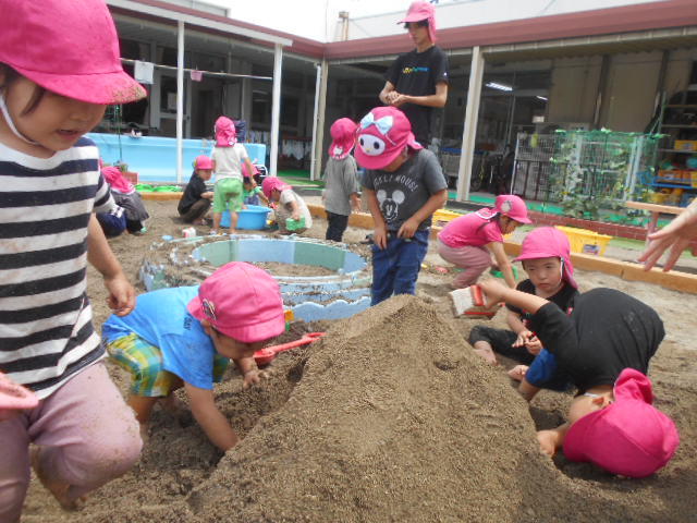 どろんこあそびをしたよ~!先生と一緒にトンネルや道を作ったよ☆「つながったかな~?」「できた!すごいなぁ~」と大喜びの子どもたち(^^)