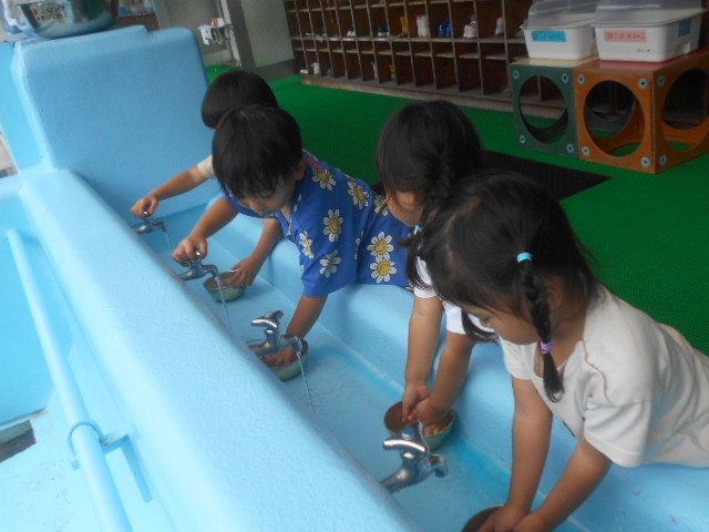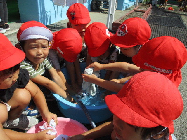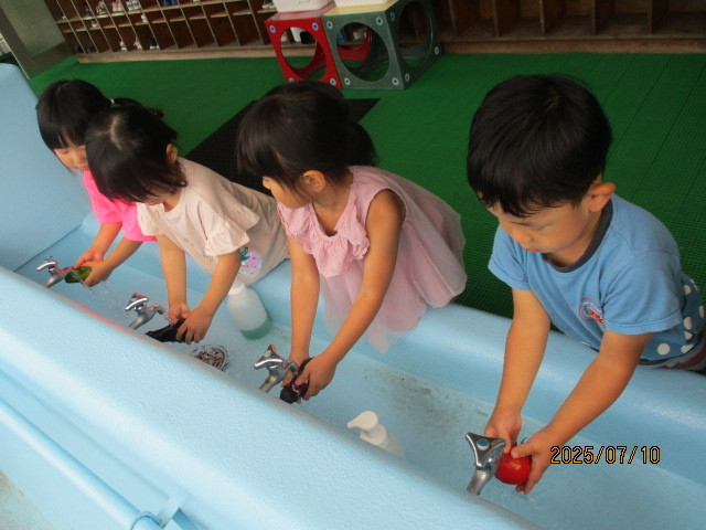 使ったおもちゃはみんなで「きれいにするぞ~」「じゃぶじゃぶ~」と言いながら洗ってっくれました☆