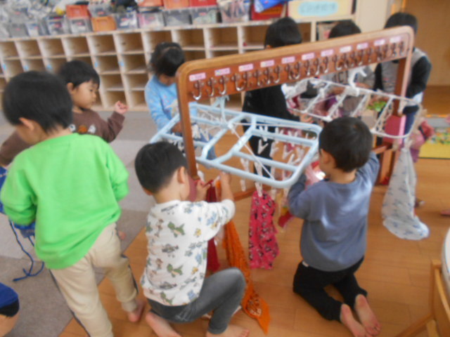 大掃除ごっこをしたよ(3歳児)