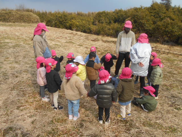 りす・うさぎ組さんは、矢野の畑の奥まで行きました。