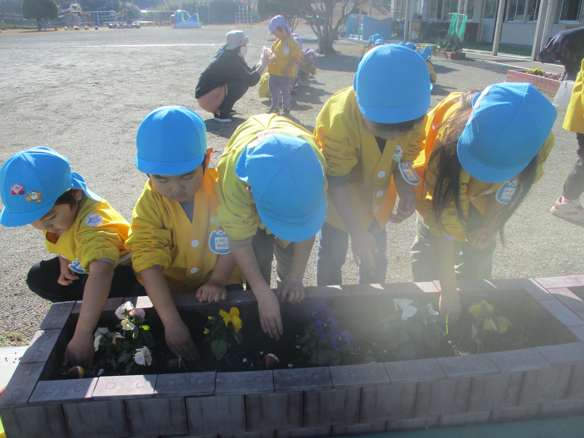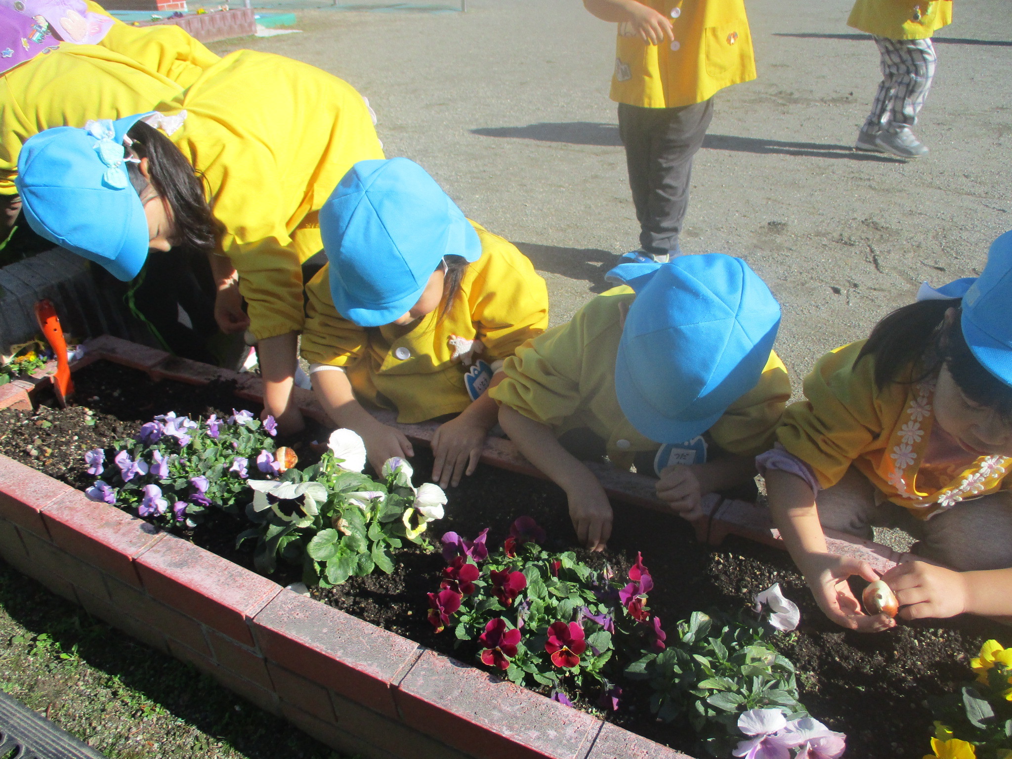 「いつ咲くかなあ」「何色ができるかなあ」と楽しみにしている子どもたち。これから毎日水やり頑張ろうね♪