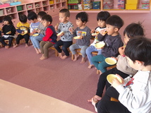 とってもおいしくて「おいしい!」「おかわりたべたーい」とたくさん食べた子どもたちでした。