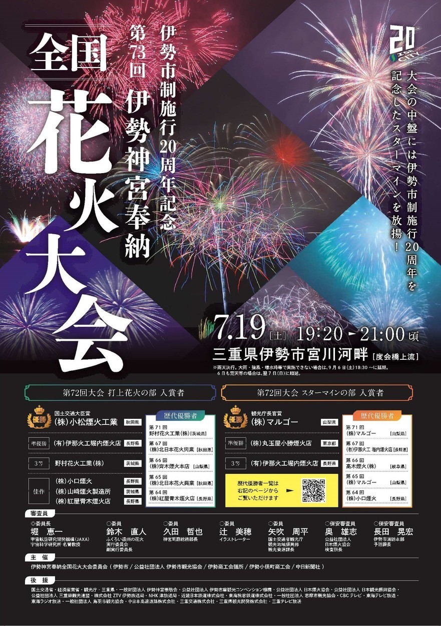 伊勢市制施行20周年記念 第73回伊勢神宮奉納全国花火大会のお知らせ