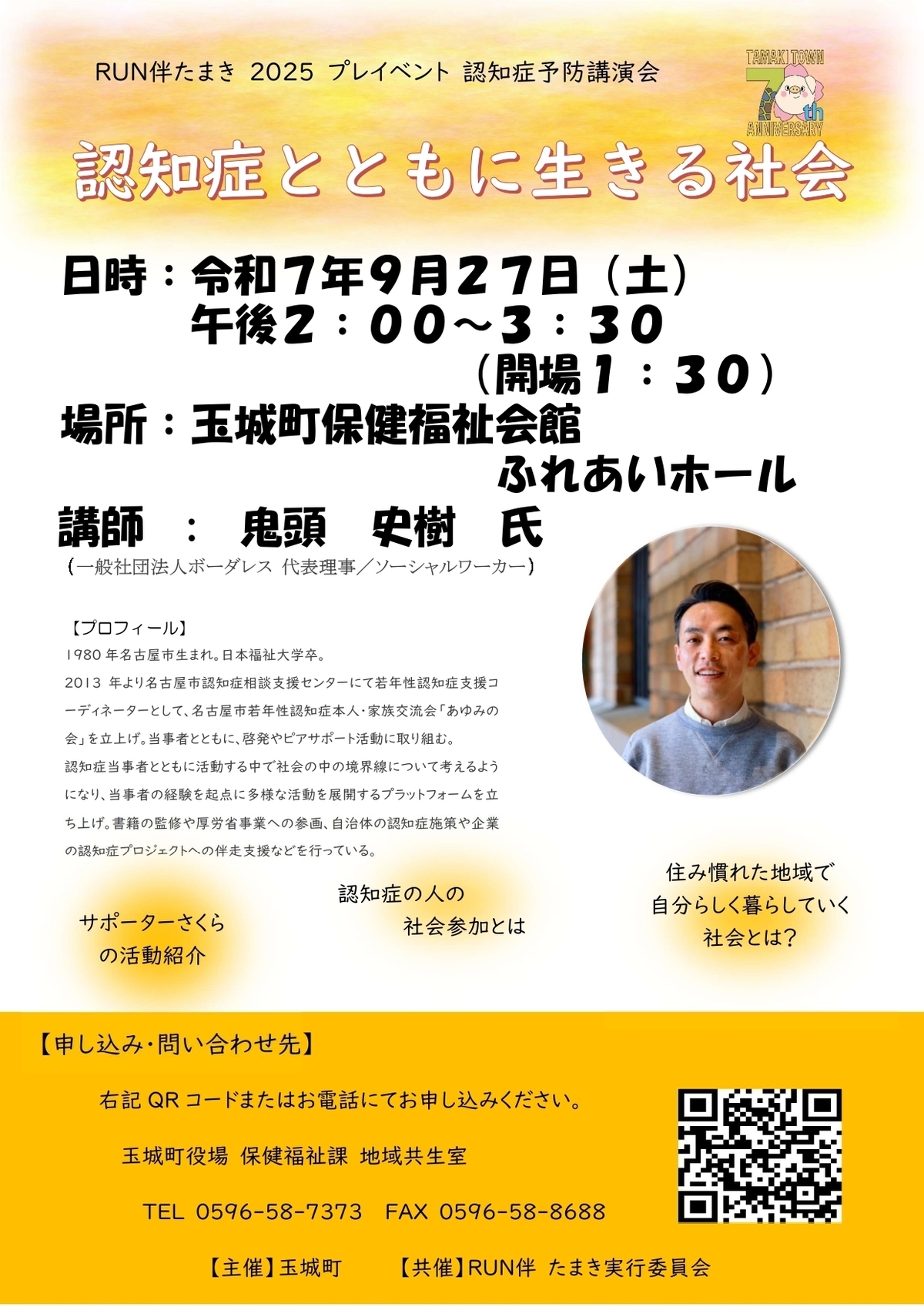 RUN伴たまき2025 プレイベント 認知症予防講演会「認知症とともに生きる社会」を開催します。
