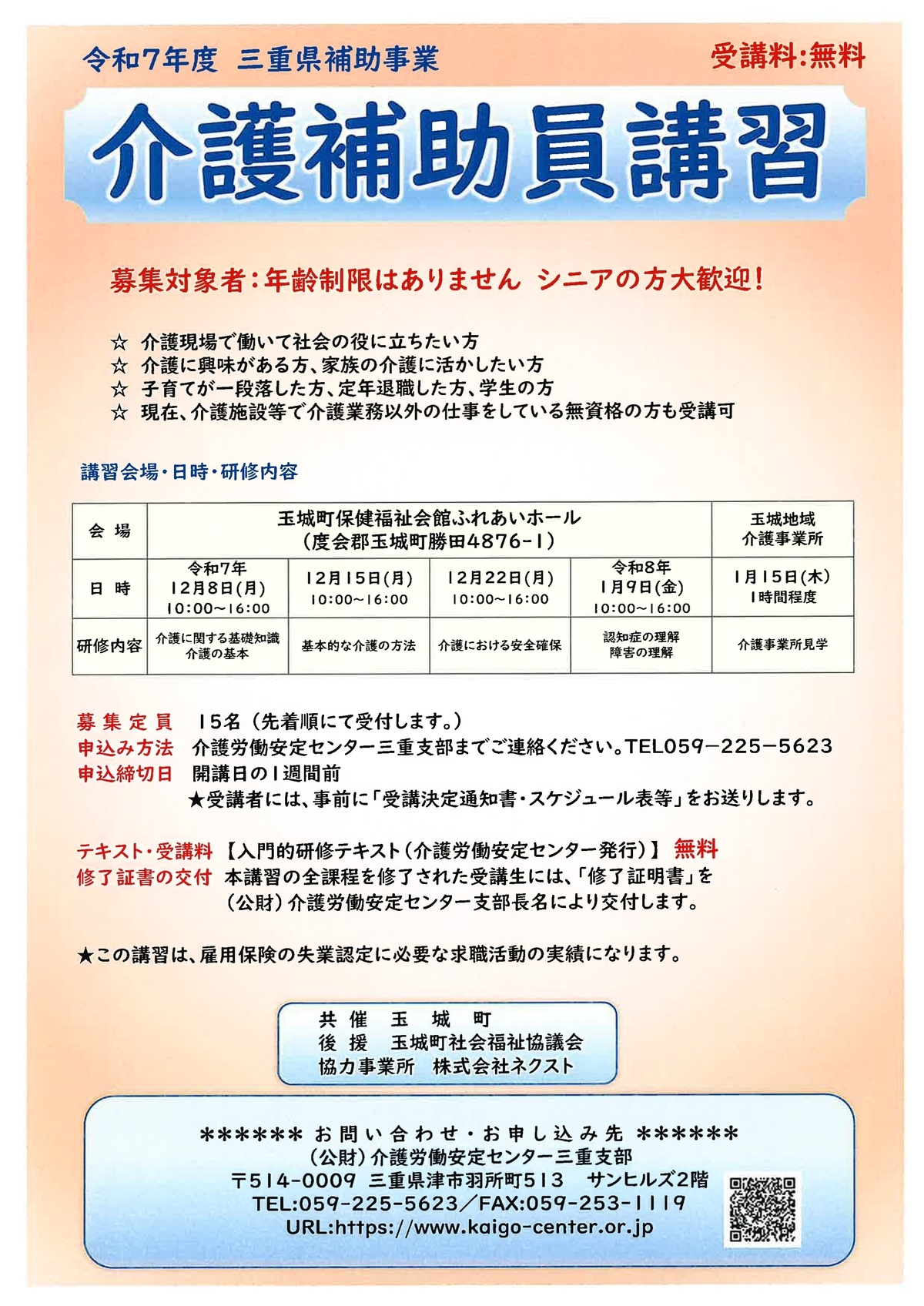 介護労働安定センター三重支部(TEL059-225-5623)まで