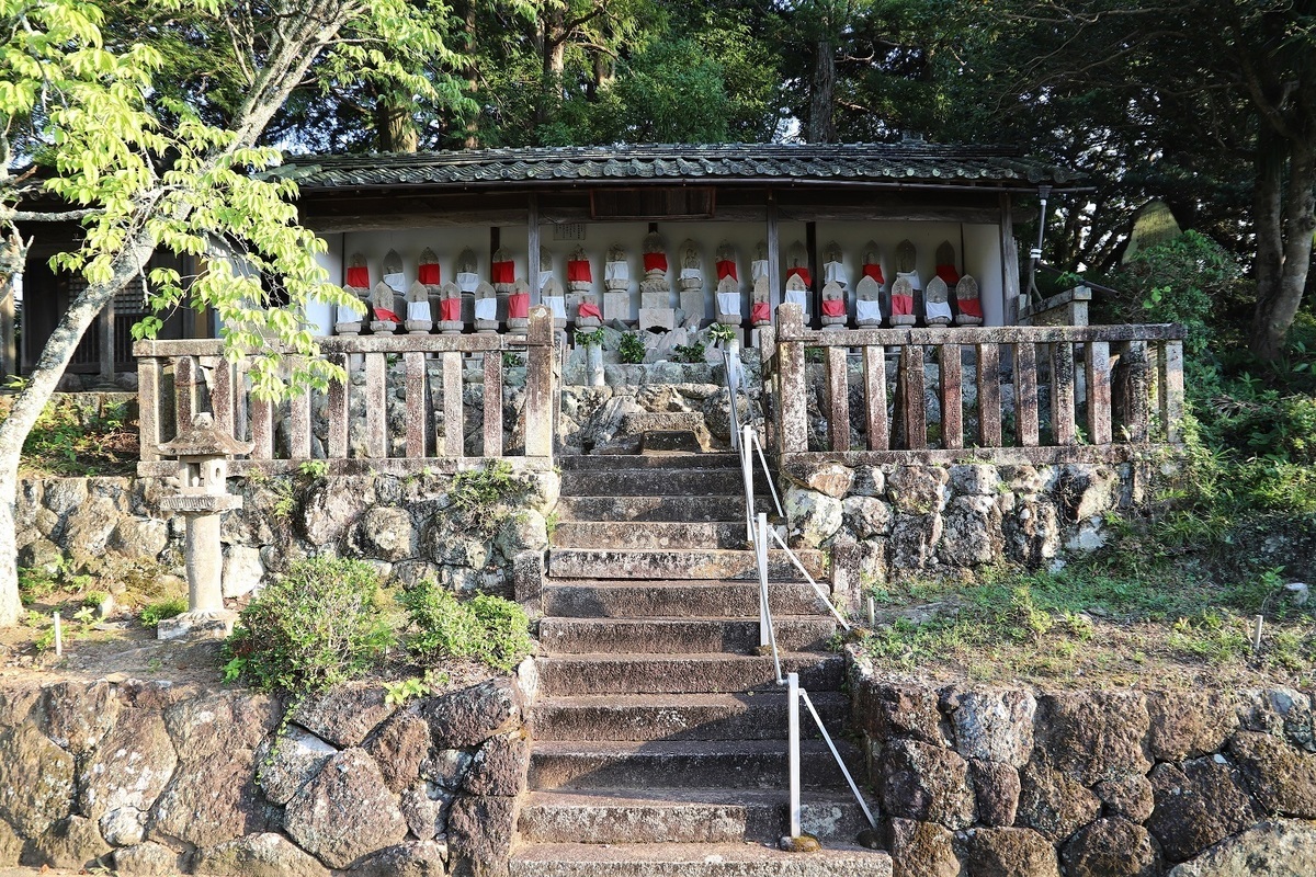 石仏庵は、熊野参詣道伊勢路を構成する資産のひとつで、19世紀初頭に隠居寺として建立され、参詣道の南側には、西国三十三所霊場の本尊を模した観音石仏三十三体を祀る観音堂が配されました。現在でも観音堂、金毘羅堂が残り、地域の方々によって守られています。