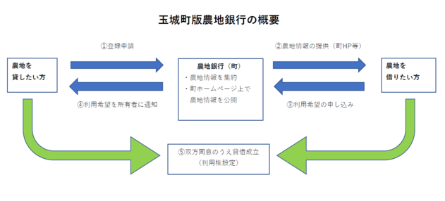「農地銀行登録申込書」を産業振興課に提出してください。受付後、登録した農地の情報の一部を町ホームページに公開します。